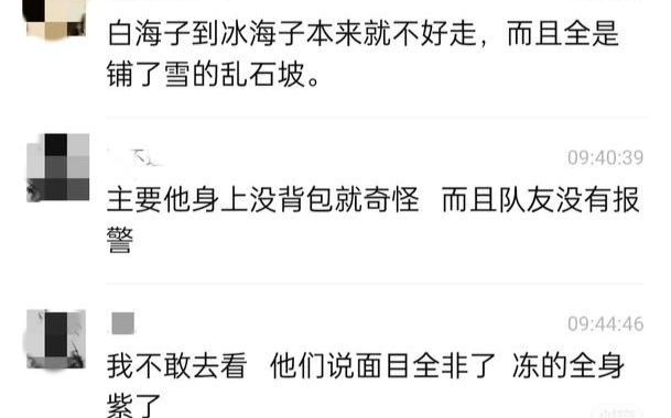 据网友发布消息显示,12月4日,有驴友在户外群发布消息和视频称,自己在徒步四川康定冰海子时,发现一具遇难者遗体,已被冻得面目全非,“全身紫了”。