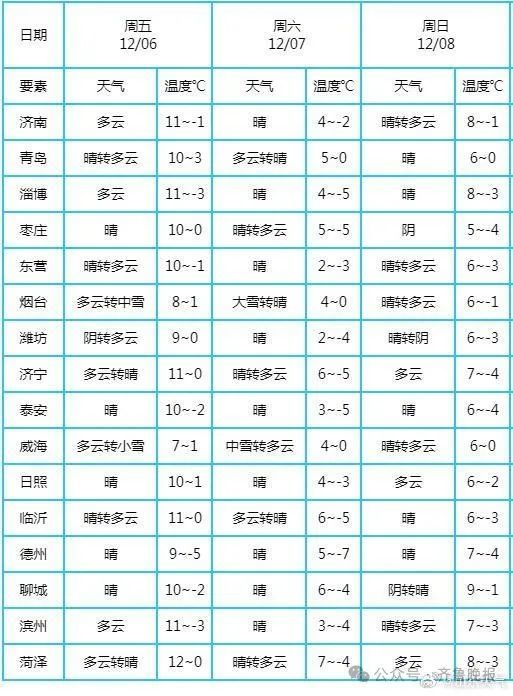 最低气温:鲁中山区-4℃左右,其他地区-2℃左右。