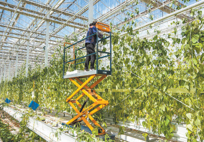 在吉林卓远农业发展有限公司,工作人员利用无土栽培技术,在室内培育蔬菜。