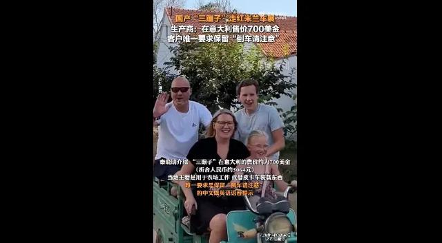 “倒车,请注意”“倒车,请注意”!外国人驾驶“三蹦子”响起中文提示音。今年初,这样一条短视频,让中外网友都不淡定了。中国网友:“三蹦子”都开到海外了?外国网友:亲,求链接。