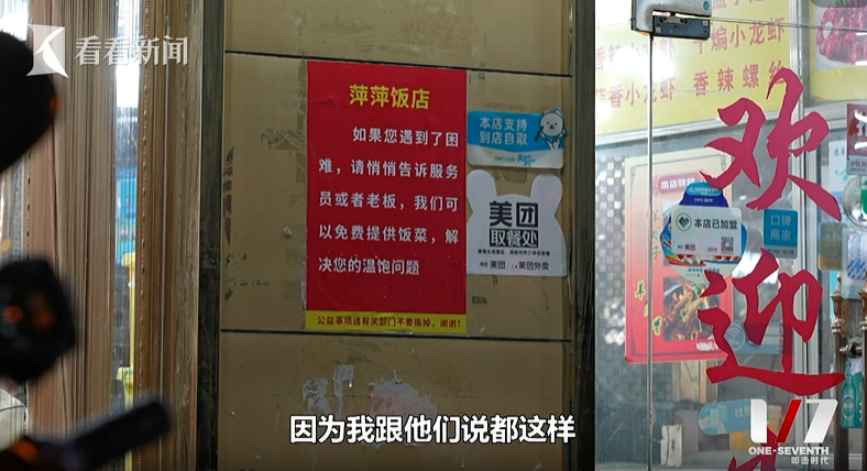 甜甜告诉记者,以前有乞讨的人,甜甜心生怜悯,就经常买一些包子和一些吃食送给他们,“因为让他们来店里吃,他们也不吃,觉得不好意思、难为情。我想着干脆在门口贴一个广告,他们看到了就不会不好意思了。我跟他们说都这样,不是你一个人这样,大家都可以的。”