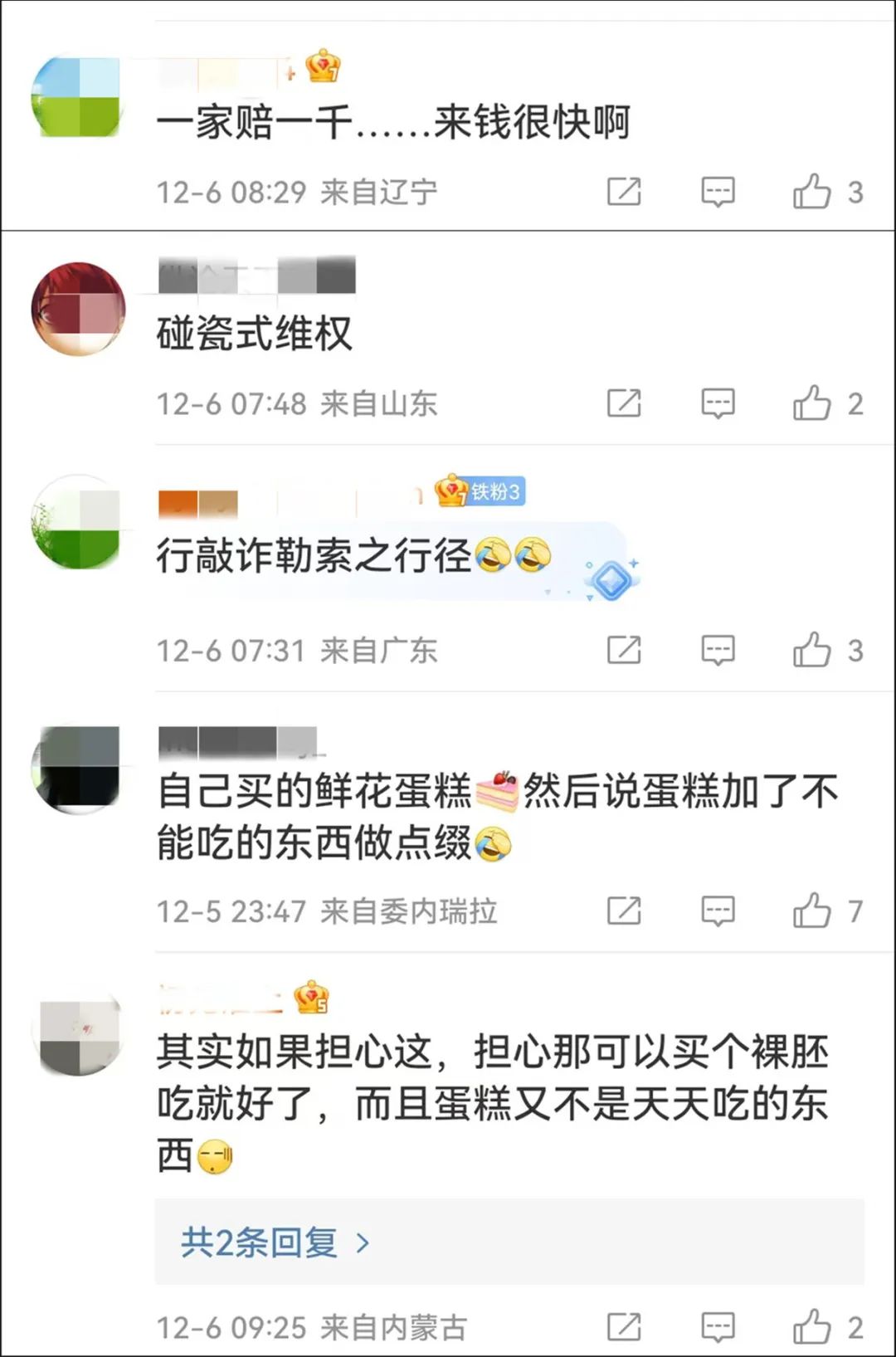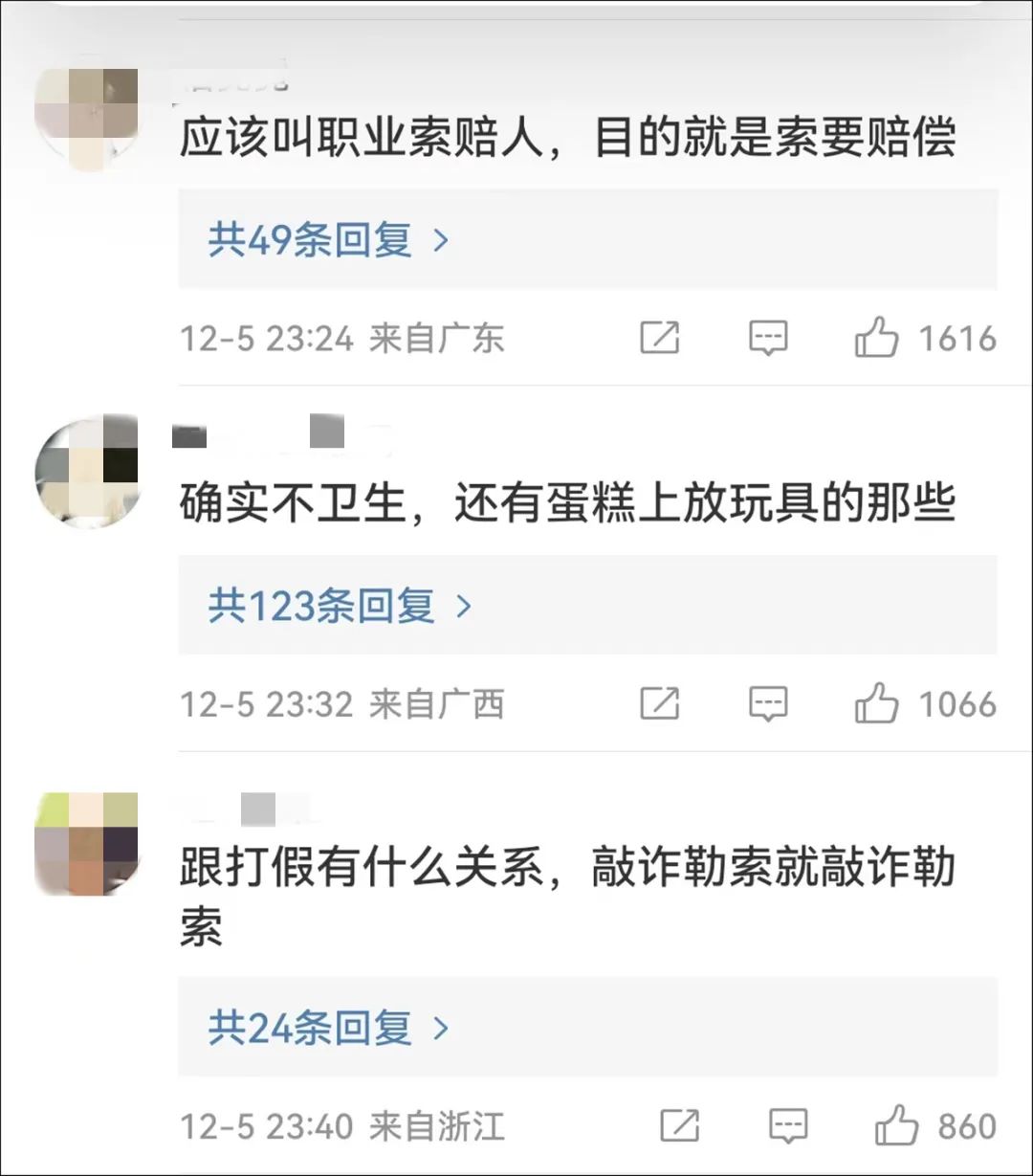 在20多家蛋糕店买同一类型的蛋糕,显然不同于正常消费需求。投诉理由均是“蛋糕上点缀了不能吃的东西”,且在与商家沟通时表现出明显的利益诉求,让人难免对其动机产生合理怀疑。