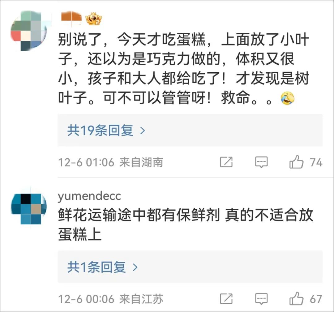 还有网友说,“鲜花真的不适合放蛋糕上”