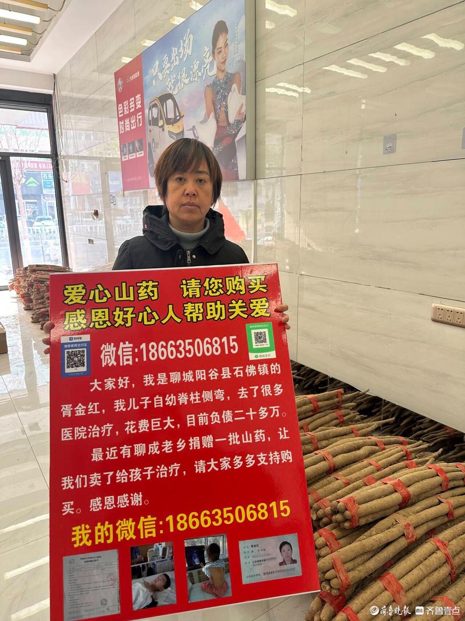 胥金红告诉记者,前天晚上,那位捐赠山药的爱心老乡王女士又给她送来了2000多斤山药,天虽然冷,但是这些暖心的事令她感到非常温暖。为了筹集儿子医药费,天气再冷,她也会一直坚持下去。