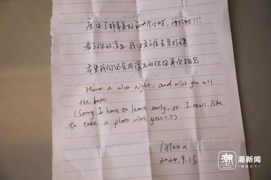 三个月前,徐阿姨在杭州演出,收到了一封粉丝手写信。这位年轻人提到,“度过了非常美好的两个小时,谢谢!看了你的演出,我决定之后去学打碟,希望我们还会在演出现场再次相见。”