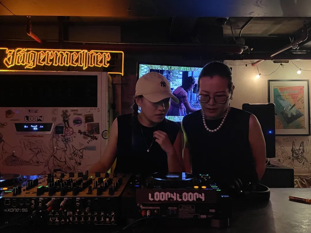 她们一起上完DJ培训课程去各地演出。“一开始班里有七八个人,到最后就剩我们俩。”
