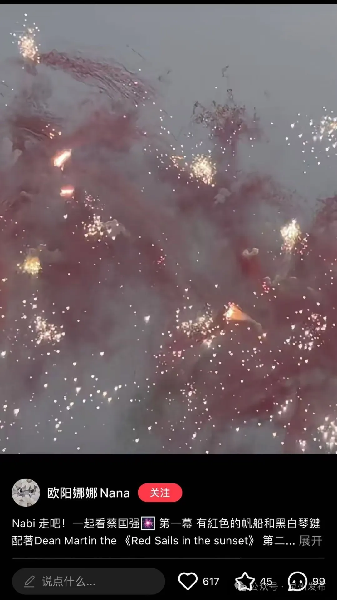 欧阳娜娜:“能感受到蔡老师的浪漫和烟花的感染力。喜欢!下次还要看。”