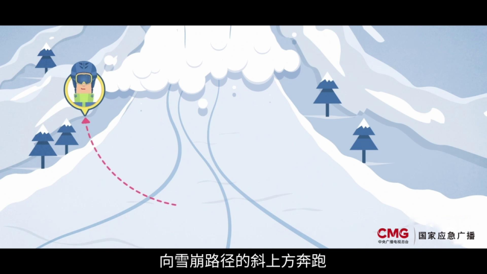 千万别往山下跑,“水往低处流”,雪也一样,正确做法是向雪崩路径的斜上方奔跑。