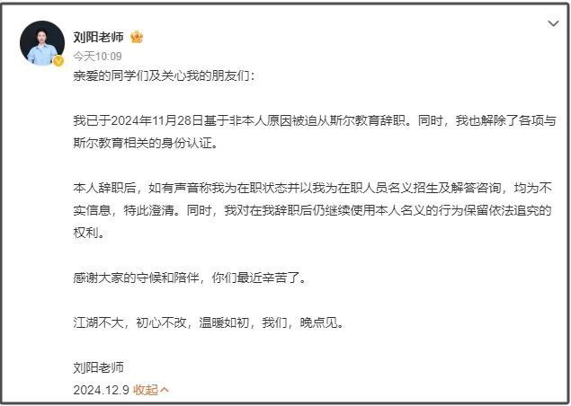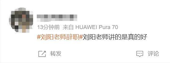 今天上午10:09,财会圈知名老师刘阳更新微博称:基于非本人原因被迫辞职。