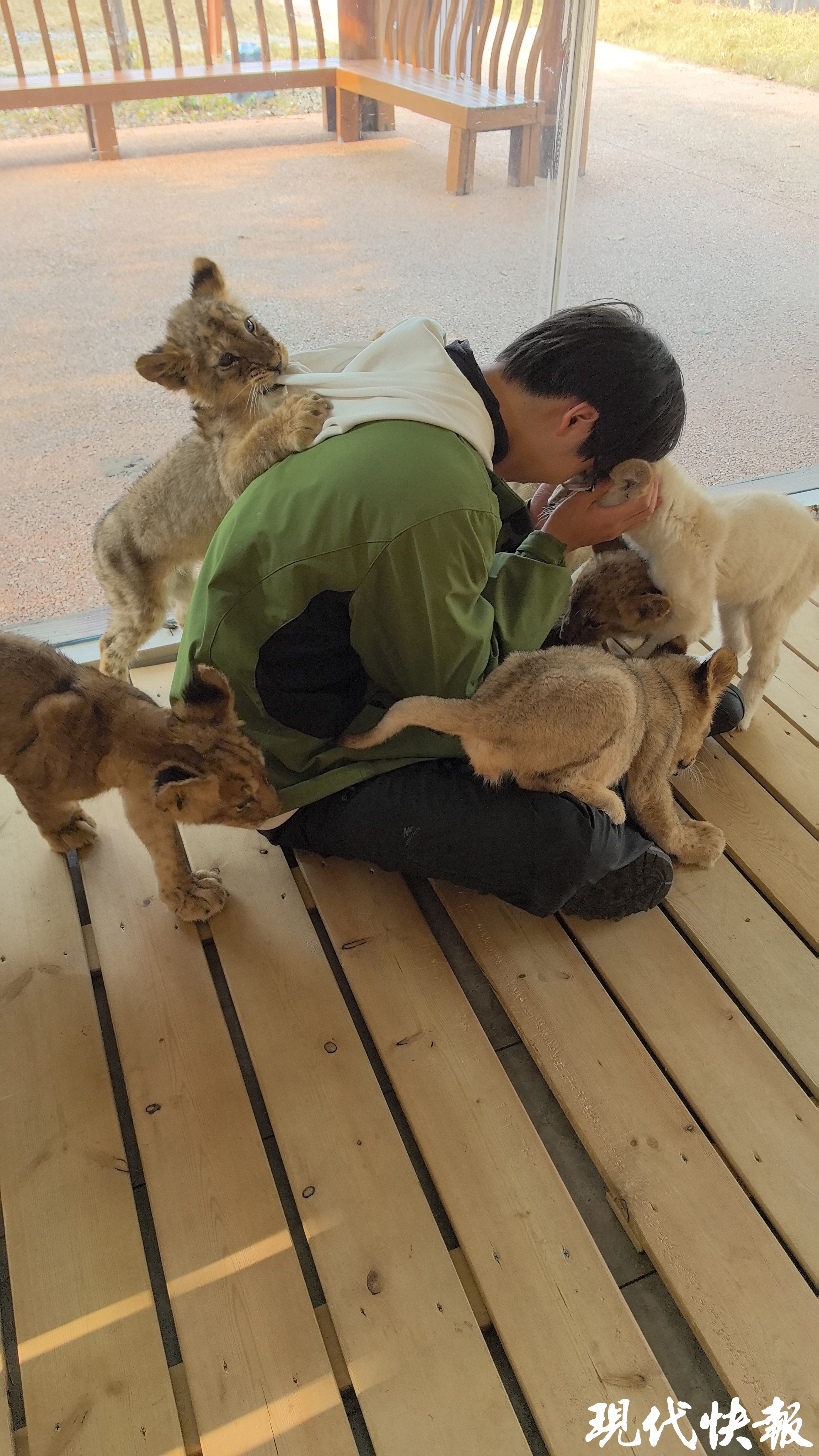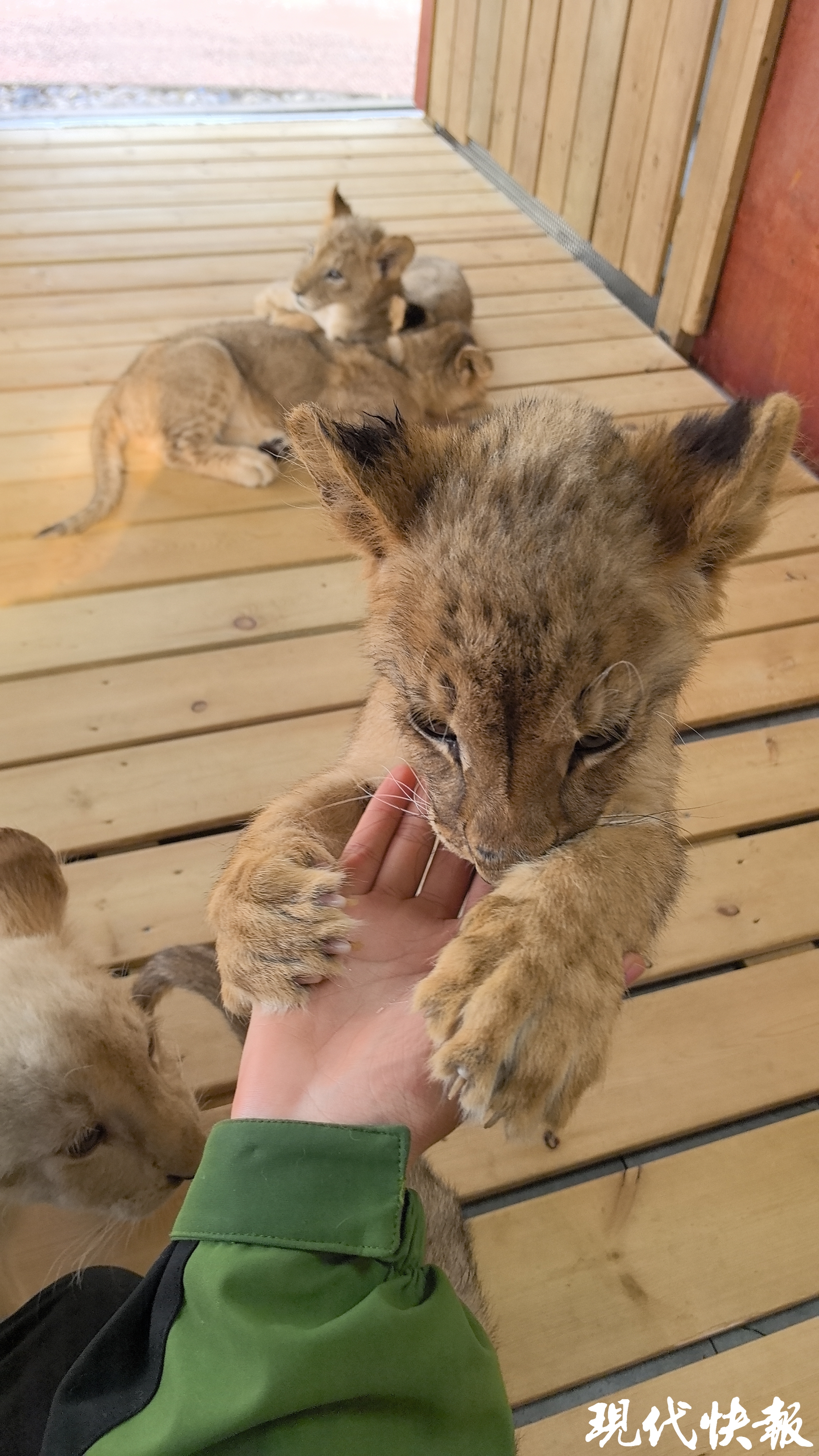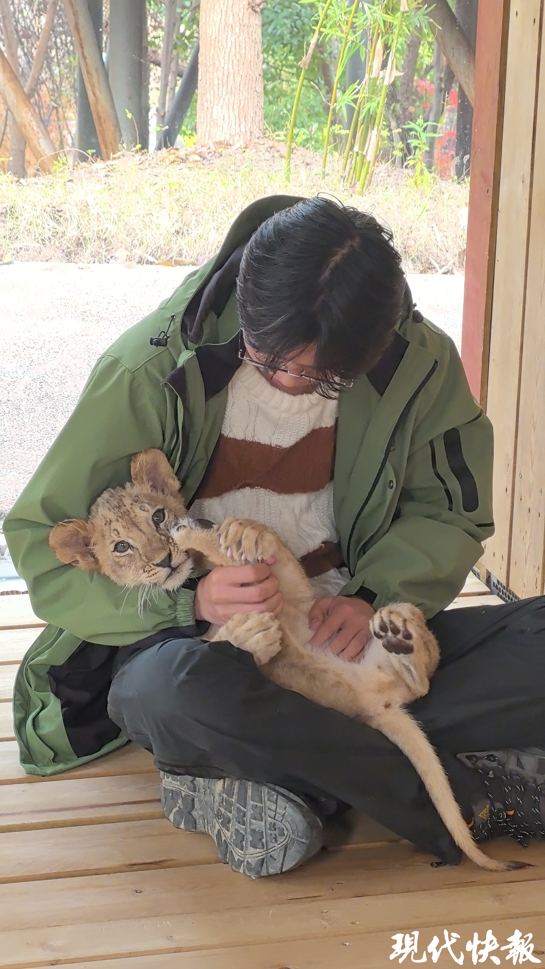 现代快报讯(通讯员 曹菁琳 倪雯 记者 严君臣)12月上旬,南通森林野生动物园内上演了一幕温馨可爱的画面,引起了游客们的广泛关注和喜爱。3个月前,动物园迎来了一群新生命——小非洲狮。然而,这些小家伙刚出生不久,就遭遇了母狮不会带娃的困境,最终被狮妈妈无奈抛弃。幸运的是,它们得到了饲养员帅气“奶爸”的精心照料和陪伴。
