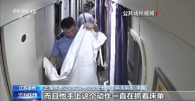上海铁路公安局徐州公安处刑警支队支队长 李巍:特别是列车员出来的时候,一个是他的左手是手上是没有东西的,右手只拿了床单,而且他手上这个动作一直在抓着床单。