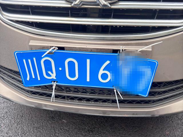 记者注意到,该车不但占道停车近两个月,还涉嫌未按规定悬挂车牌:该车前车牌不是按规定用铆钉固定,而是用四条塑料扎带拴在车上。