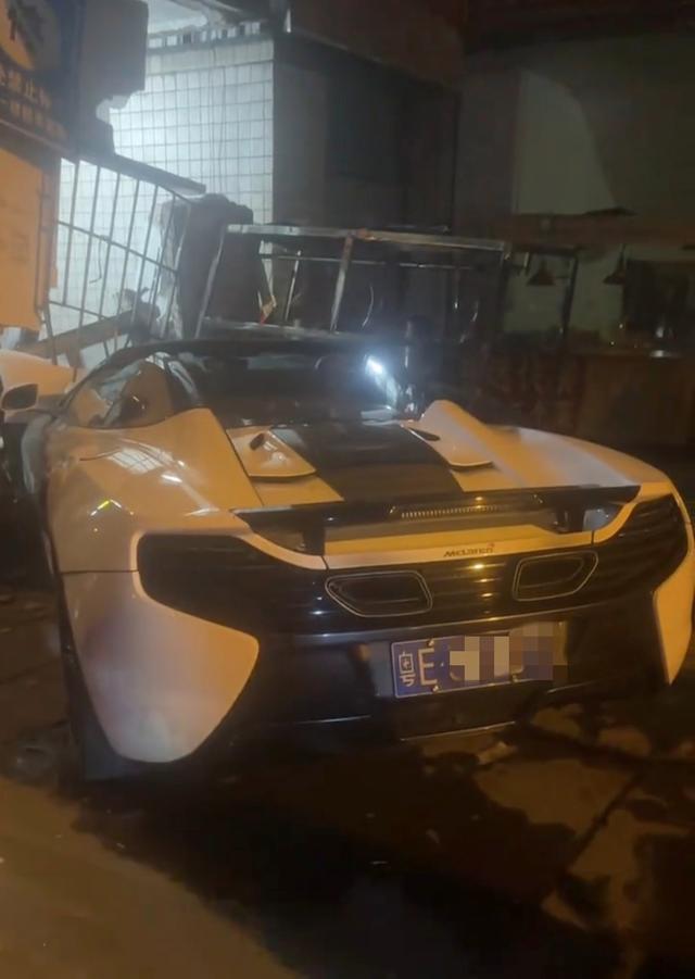 视频画面显示,夜间,一辆粤E牌照的敞篷车撞上一处沿街房屋,导致房屋窗户破损,墙体出现倒塌,现场一片狼藉,视频中有声音称“开到人家屋里去了,把人家屋撞到了”。从车辆标志看,该车系一超级跑车品牌。