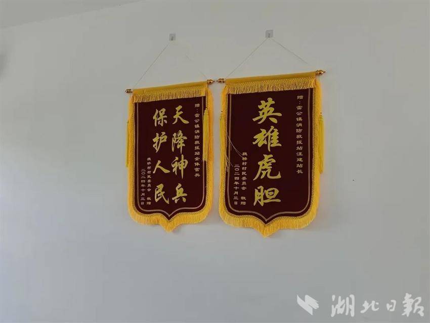 安陆市雷公镇消防救援站里,墙面上挂着的两面锦旗,格外引人注目。送来锦旗的是雷公镇魏桥村村民委员会。