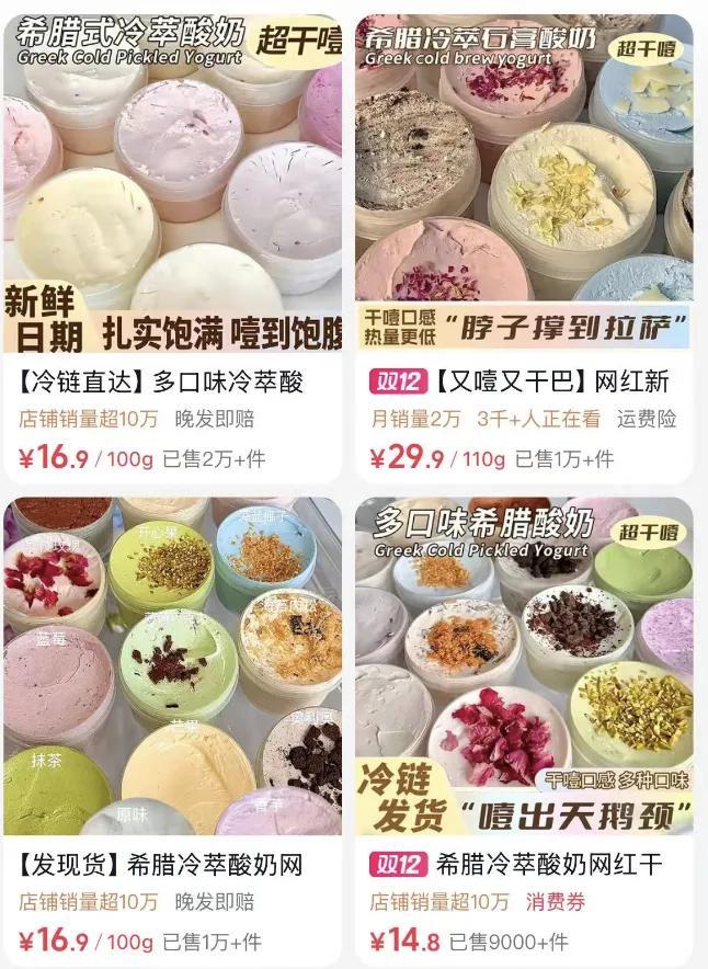 因高蛋白,低热量,它成为不少人追捧的健康食品。记者查询发现,在网购平台上,多家干噎酸奶店铺销量超10000。