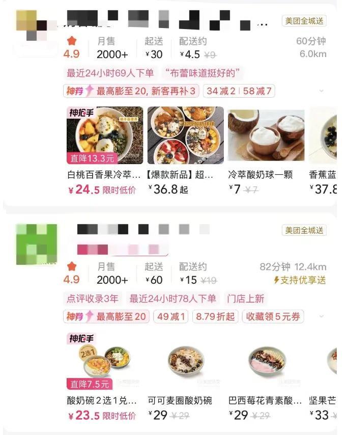 在记者定位的上海市威海路,周边也有多家酸奶碗外卖月销2000以上。
