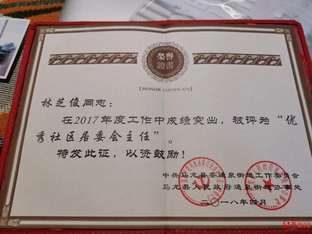 ▲林芝俊曾获“优秀社区居委会主任”称号