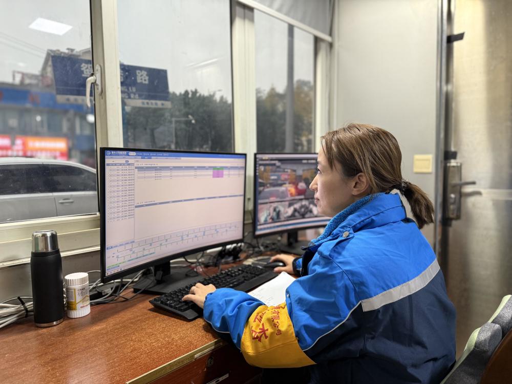 龙洋正在调配公交车班次。新华社记者赵佳乐 摄