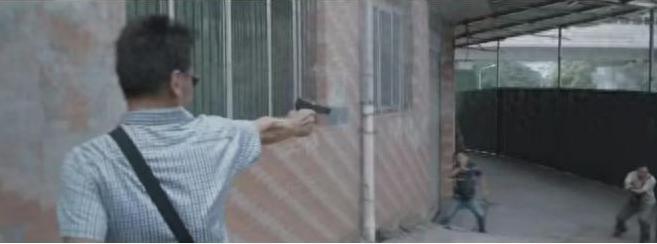 顿感不妙的周克华右手掏出手枪,猛地转过身来朝身后那两男子射击,对方迅速掏枪还击,巷子里顿时枪声大作, “砰、砰、砰……”几声枪响之后,画面特写定格为周克华腹部受伤,紧接着头部右边中枪,扑通一声倒在地上,流出一摊鲜血。