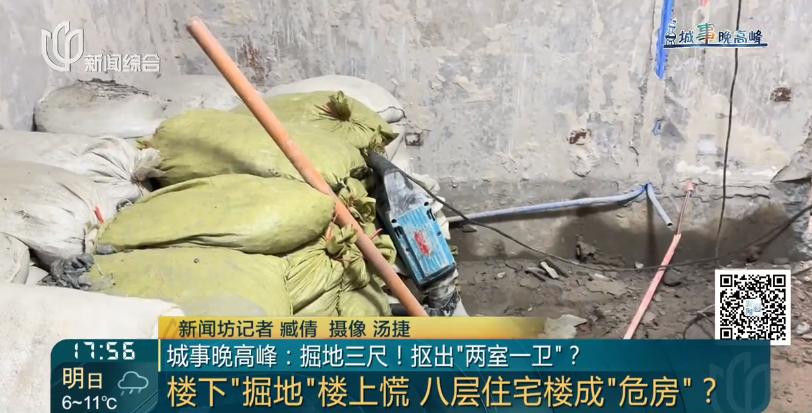 12月10日,家住上海静安区灵石路888弄7号楼的十几位居民向记者求助,他们楼栋的一楼住户一直在家里施工,这施工也是够夸张的,竟然掘地三尺,往下"挖"出了"两室一卫"!