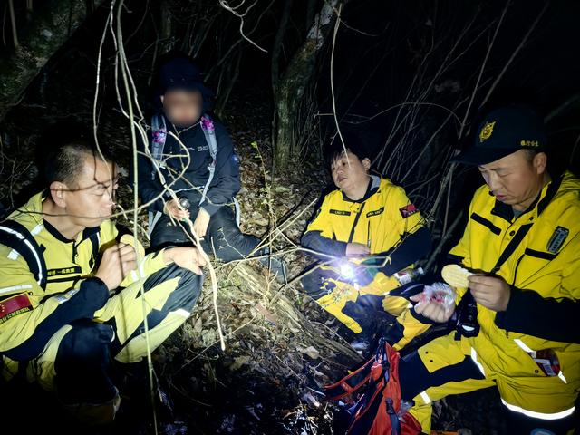 进入深夜,气温达到0℃左右,寒风刺骨。救援人员穿过山间小道,经过3小时的艰难跋涉,22时许,终于在马啸岭岭头找到夫妻二人。