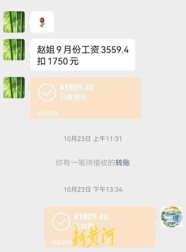 新黄河记者发现,当事人赵女士曾在社交平台发文称,“打假的罚钱让我和领导之间分,我收完临期的食品,领导忘退货了,被打假人买走了。因为我是新来的,所以背锅了。”赵女士提供给记者的聊天记录截图显示,10月23日,悦泰公司相关负责人结算了其9月份工资,全部薪资为3559.4元,扣除1750元,赵女士实际收款1809.4元。