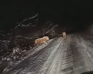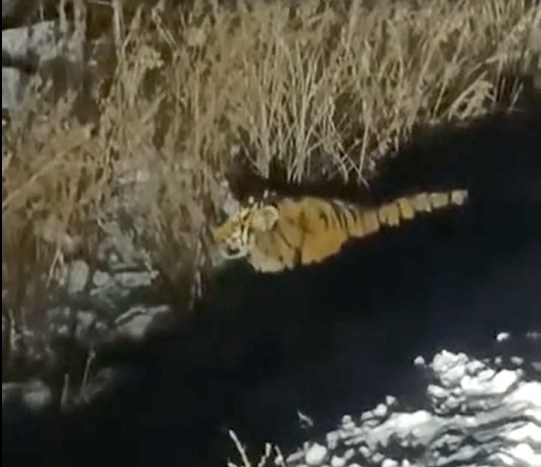 此前数日,也有几段老虎在汪清县出没的视频在网络上流传。12月2日晚6时左右,在吉林延边朝鲜族自治州汪清县,有市民驾车沿山路行驶时,意外邂逅了两只野生东北虎。面对驶来的车辆,老虎从容不迫地躺在满是冰雪的道路中央,片刻后才缓缓起身,悠然离去。两只老虎结伴行走了一段路程后,各自钻入了树林。
