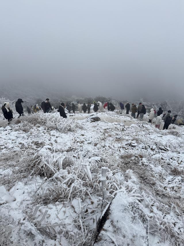 这两日,杭州临安太子尖飘下一场雪,将山尖染成银装素裹的模样。适逢周末,太子尖气温低,雾凇雪景仍在,一大批热情的赏雪游客们正在涌入太子尖。