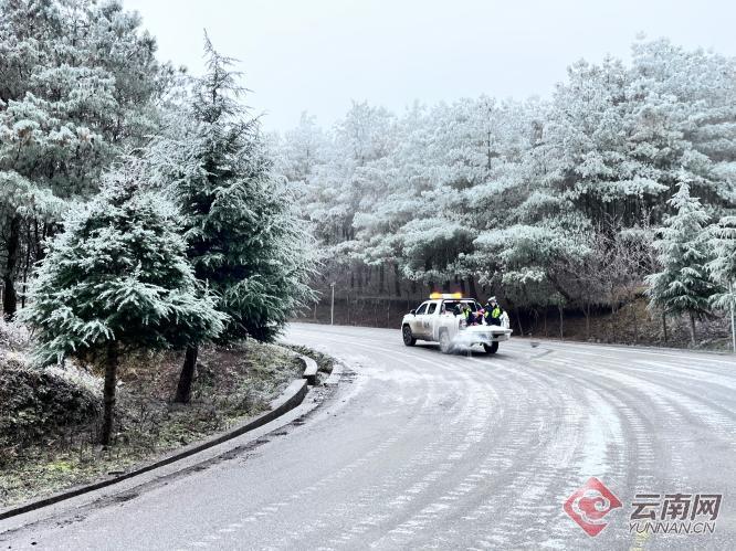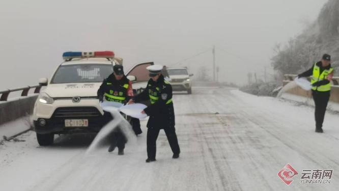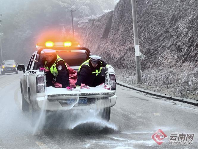 在昭阳区大山包镇至炎山镇公路滮白水等易覆冰重点路段,昭阳区交警二大队安排执勤人员于每天2时、7时、23时等重点时段,开展道路巡逻,掌握路面情况,对弯道薄冰路面抛撒融雪剂除冰。同时,及时更新路况信息,做好安全出行提示和应急值班值守,全力保障辖区群众安全出行。