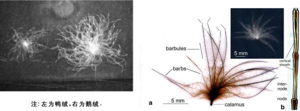 鸭绒、鹅绒、鸡绒的绒羽结构图