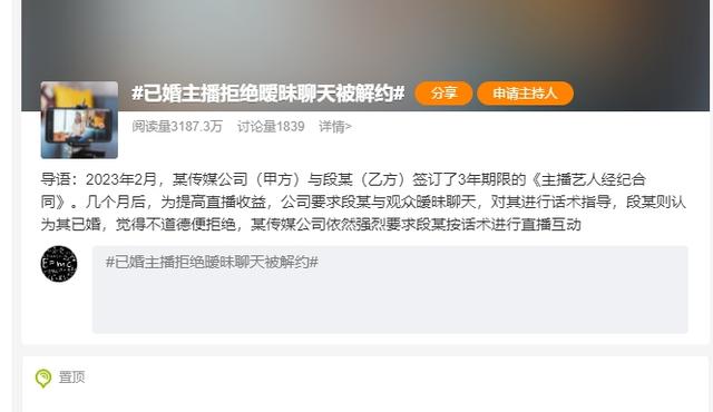近日,河南省南阳市中级人民法院审结了一起因主播拒绝暧昧聊天而被经纪公司起诉的二审上诉案件,法院认定公司要求段某与观众保持暧昧关系违反公序良俗,违约在先,驳回了该公司的诉讼请求。
