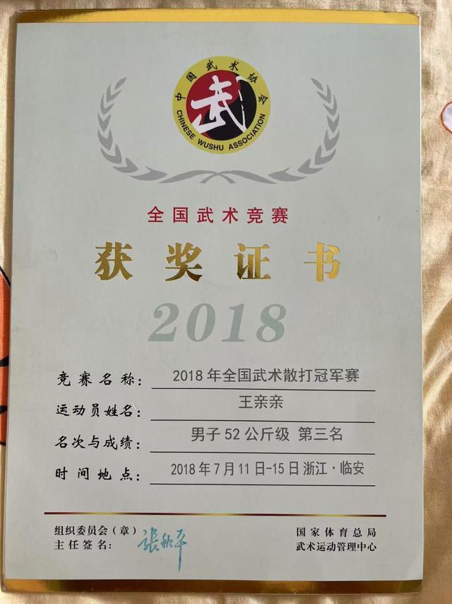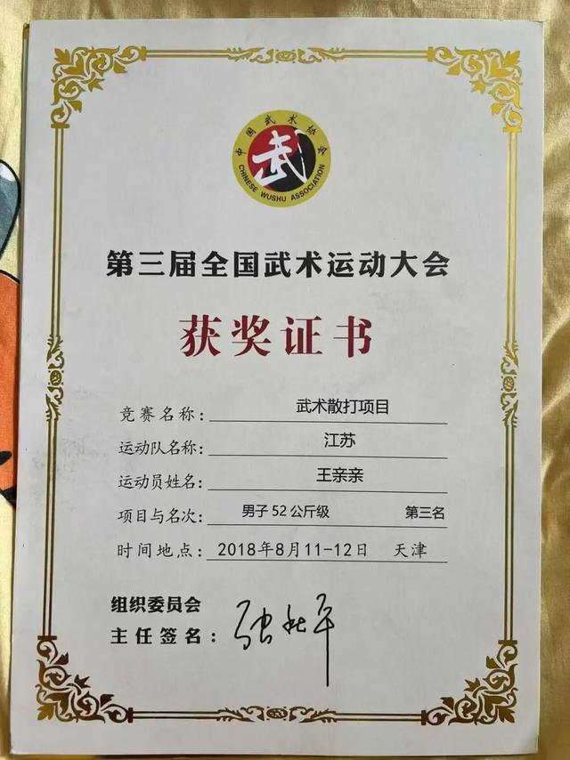 据悉,王亲亲今年25岁,6岁开始学习散打,15岁进入江苏省体育局训练中心,曾获得第三届全国武术运动大会武术散打项目男子52公斤级第三名、2018年全国武术散打冠军赛男子52公斤级第三名、2016年全国青少年武术散打锦标赛男子52公斤级第三名等成绩。