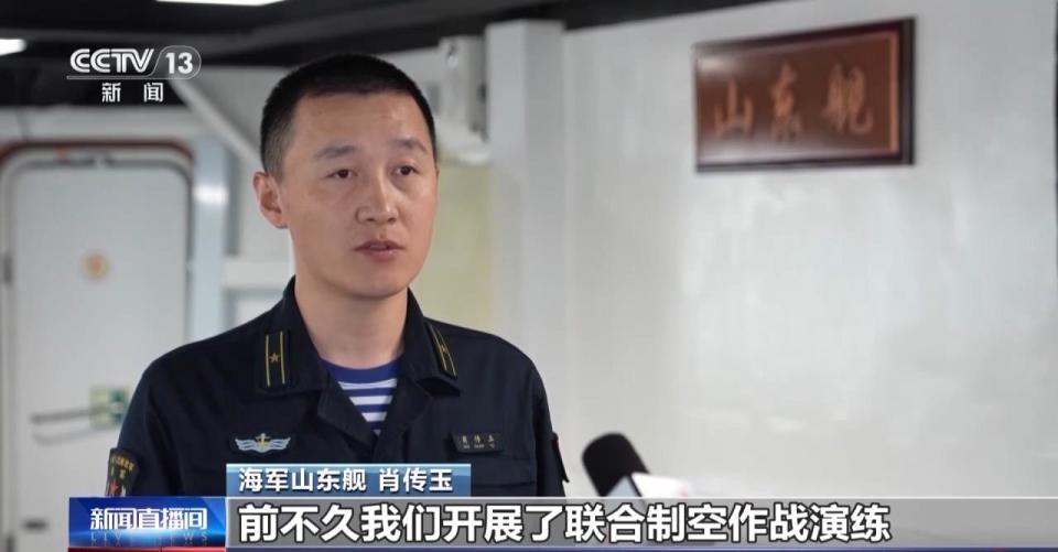 海军山东舰肖传玉:前不久,我们进行了联合制空作战演练,新型战机通过空中加油的方式提升了攻击距离和探测距离。同时,伴随着新型导弹驱逐舰加入,编队对海对陆打击和防空反导手段更加多样,作战样式更加丰富,整个编队综合作战能力得到进一步提高。