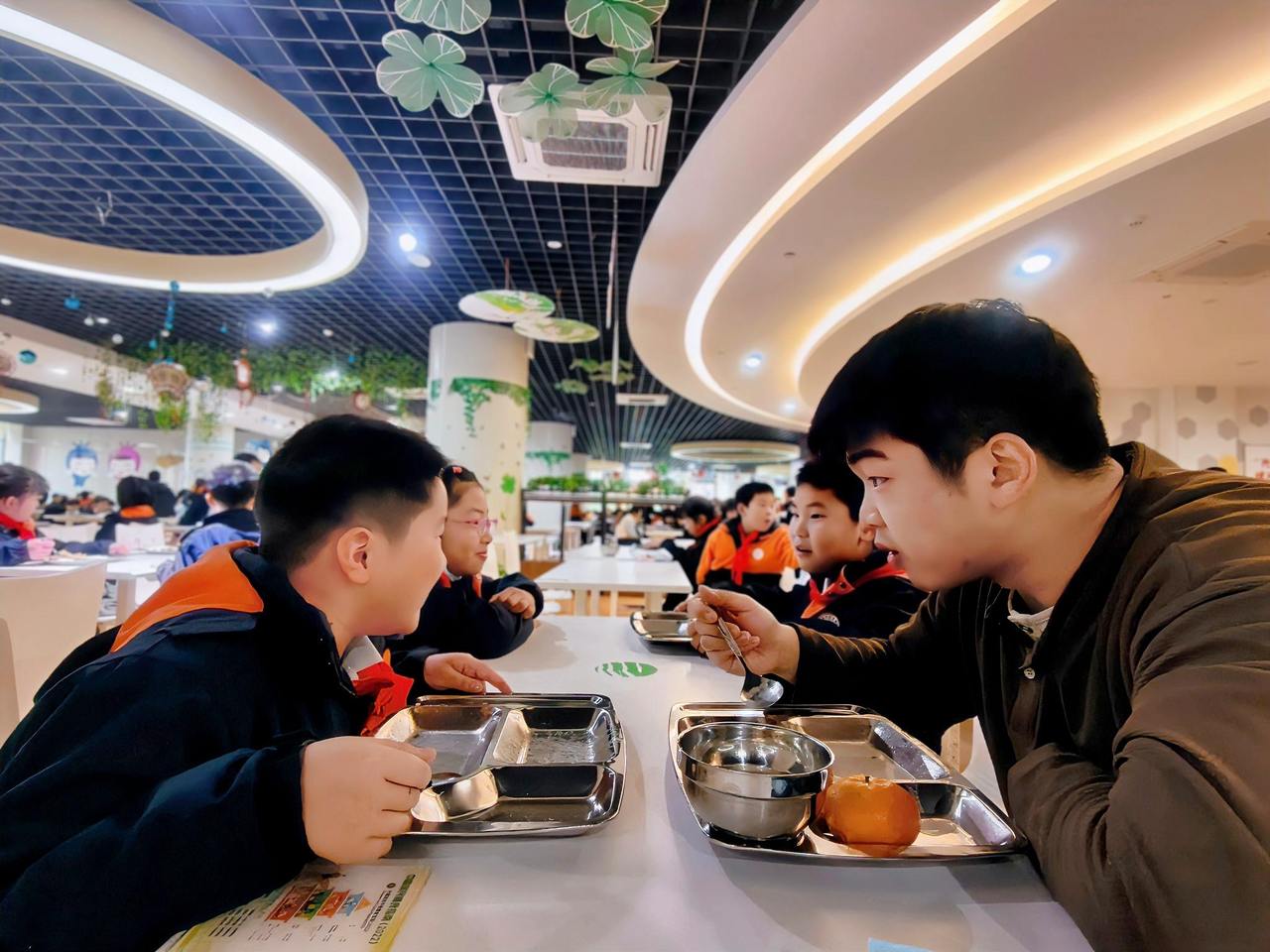 杭州市东城外国语实验学校自2022年建校以来,一直实行“师生同餐”制(受访者供图)