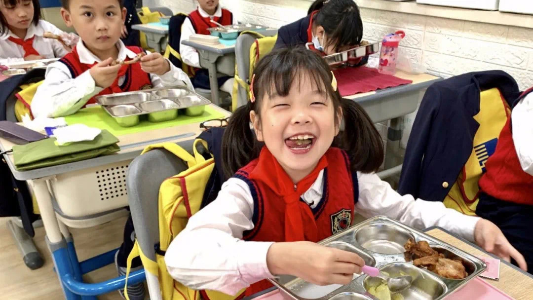杭州长江实验小学,学生正在吃饭(受访者供图)