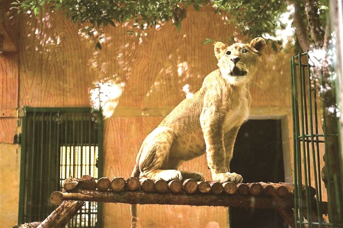 为了确保小狮子“圆宝”能够顺利过冬,工作人员给它增加肉量和相应的营养素。图为小狮子“圆宝”。