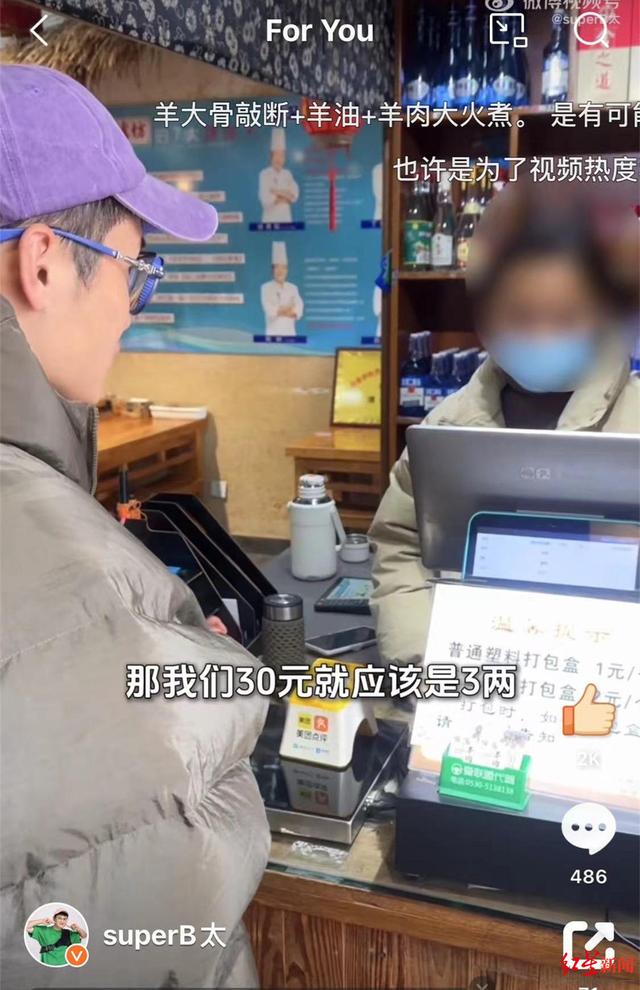 而针对“一碗羊肉汤有多少羊肉”的问题,徐峰表示一碗羊肉汤的售价,汤的比重比肉要高,净肉100元一斤,如果要羊肉汤则是按125元一斤去投量的。按照该店的出餐标准,一碗30元的羊肉汤,投放肉量在120克正负5克。“B太”所点的羊肉汤肉量刚好卡在标准允许的误差范围内。