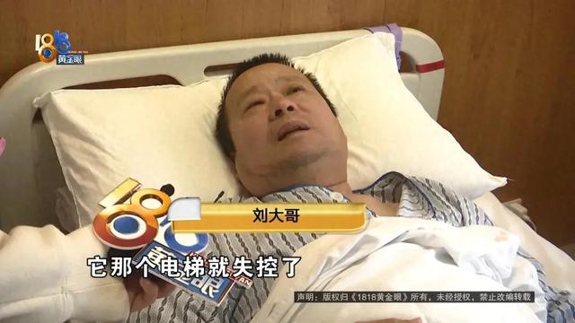 刘大哥:我说怎么会2楼停下来了呢?我就看1楼(按钮)灯灭了,那我按1楼,1楼那盏灯又灭了。我想想不对,是不是电梯坏了,因为那个电梯去年的时候就老是出小问题,我按了物业的(警铃),大概过了二十几分钟,电梯维护的他们去叫来了。结果(电梯)一下子到24楼,把你扔到顶上又“啪”地扔回来了,我就感觉就是我们自己好像坐那个什么东西,也想不出这么快的东西,没有了。