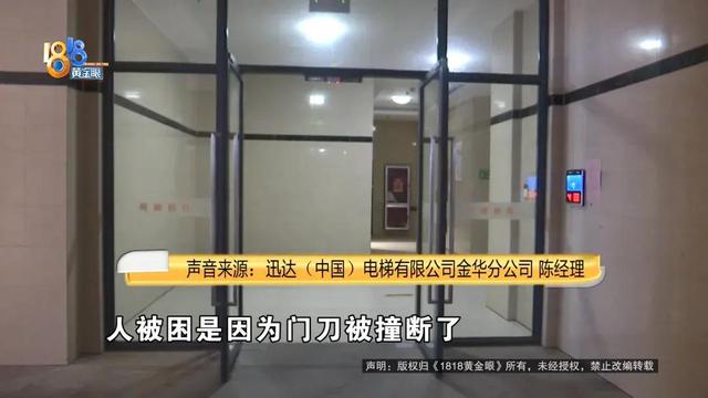 迅达(中国)电梯有限公司金华分公司 陈经理:人被困是因为门刀被撞断了,因为是从其它楼层门缝里面,或者他们装修的时候异物掉进去了,掉进去之后把门刀卡断掉了。