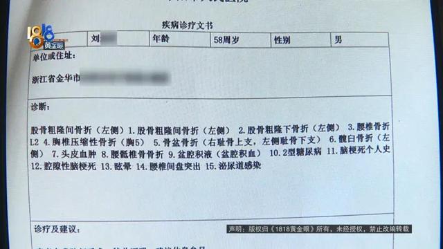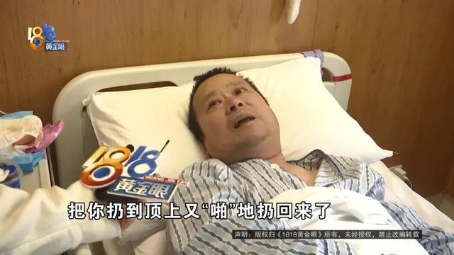 刘大哥:它那个电梯就失控了,从2楼一下子到24楼,就是几秒钟。整个人被扔上去,我这个头上,灯全部敲下来以后,应急反应一样去挡了一下,失去平衡了,整个腿从这里到这里全部摔断了。