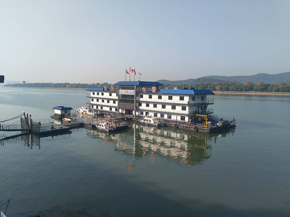 在水警大队的钢制趸船上,水警大队先是腾出了一间有两张床的宿舍给蓝天队员。后又腾出一间有两张办公桌和一张沙发的房间供他们值班和存放救援设备。最后,水警队把值班队员们的一日三餐也包了。