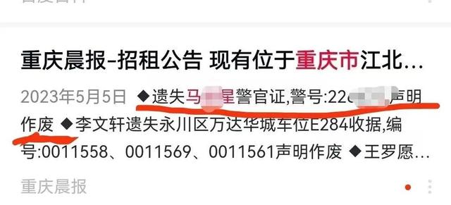 马某星曾遗失过警官证,报纸上刊登的遗失作废信息。