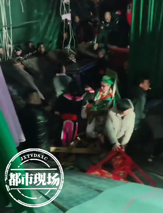 都市现场记者了解到,该戏曲演出剧团为缙云县的一家婺剧团,当时在演出的剧目为《麻疯告状》,在表演“乞讨上京”这一剧情前,舞台突然坍塌,多人从舞台上摔下。