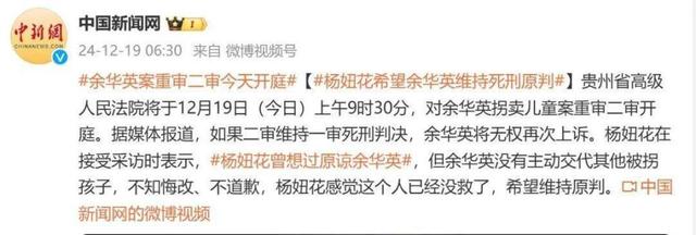 据媒体报道,如果二审维持一审死刑判决,余华英将无权再次上诉。