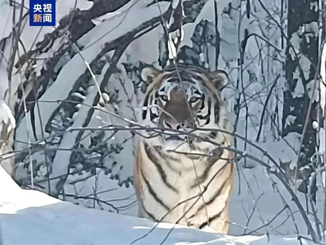 12月初在长白山地区出现的野生东北虎 图据央视新闻客户端