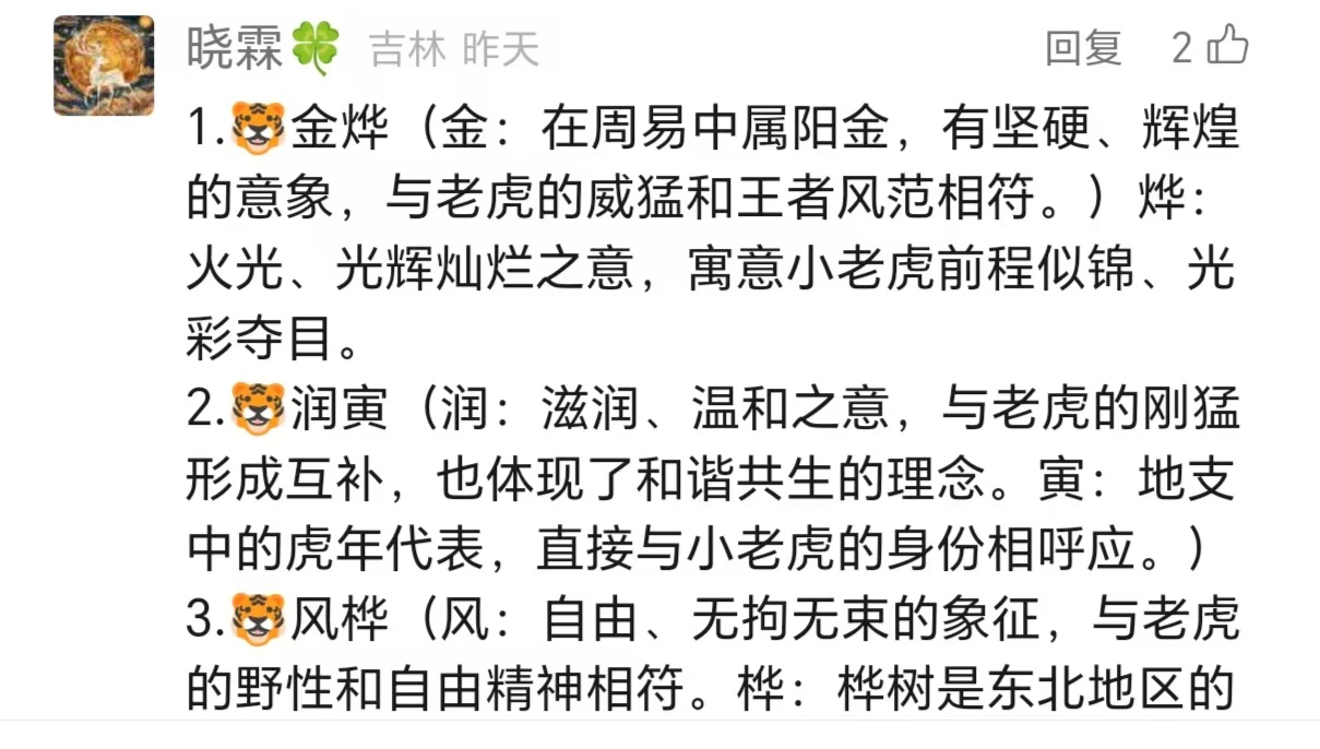 论给东北虎宝宝起名,