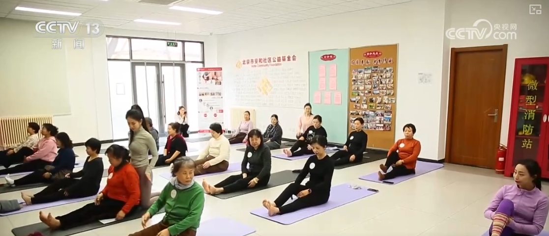 在北京朝阳安华怡园养老照料中心,这段时间,不少老年人在“老年学堂”第一次体验到了瑜伽这项运动,跟随授课老师,大家尝试进行冥想和轻柔体式的练习。此外,考虑到他们的身体状况,课程针对老年人的生理特点进行了适老化改良,让运动过程更安全、更舒适。