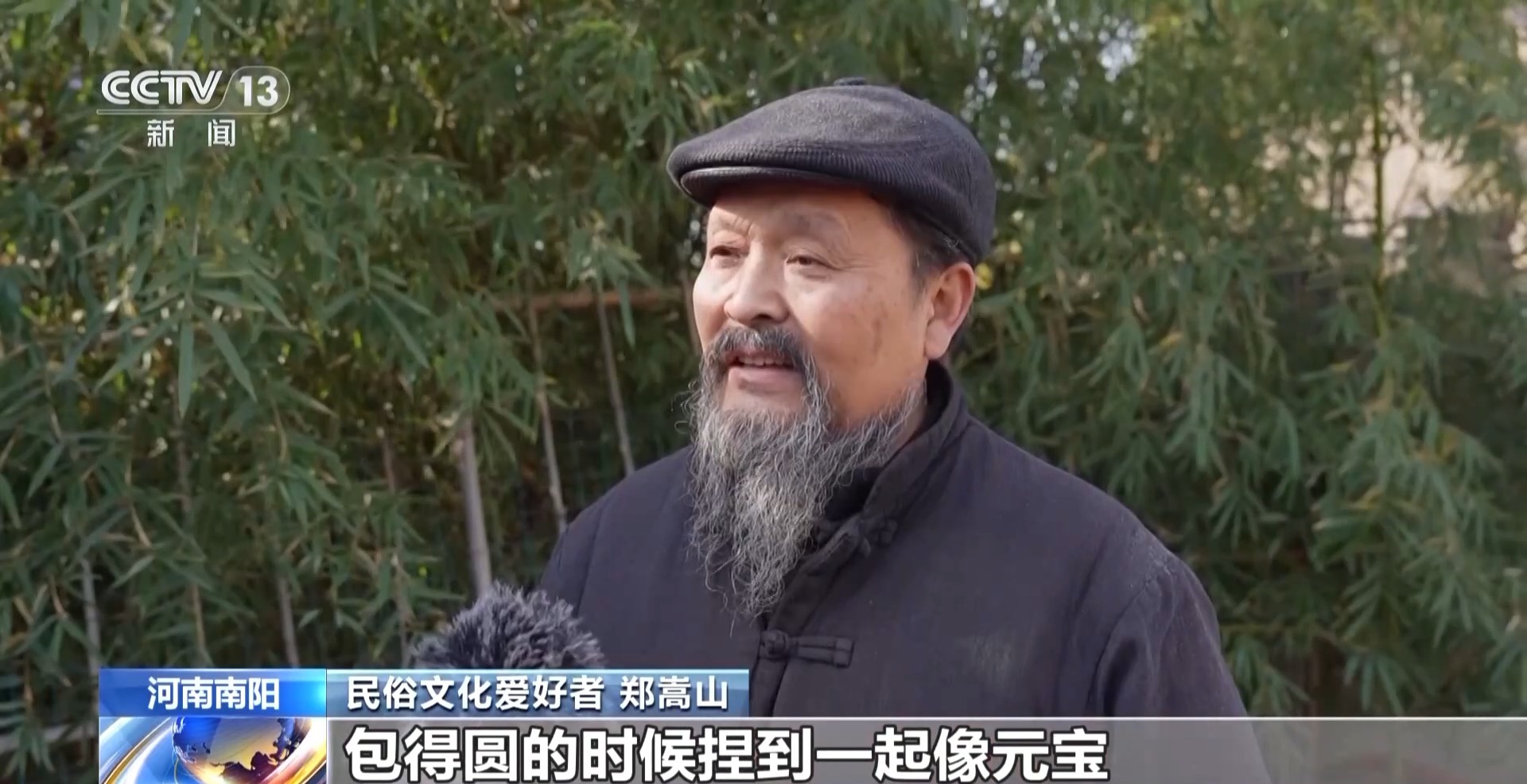 民俗文化爱好者郑嵩山:包得扁的时候像耳朵,包得圆的时候捏到一起像元宝。这样的话,我们的家乡人就说,饺子代表着收成、财富和满满的收获。