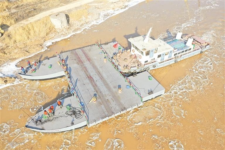 连日来,随着气温不断降低,黄河石嘴山市惠农段出现了流凌。为保障黄河防凌安全,惠农区多部门联合对河滨浮桥进行了拆除。