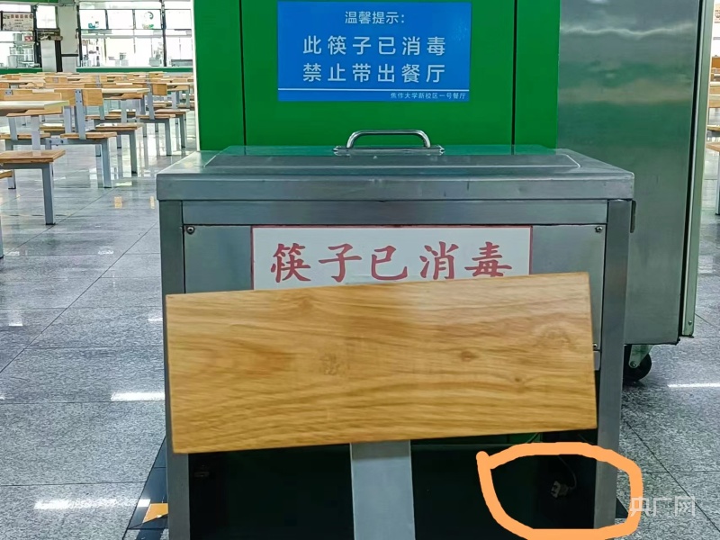 大学食堂餐具消毒柜未插电(央广网见习记者张羲轮摄)